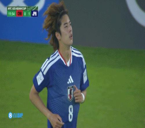體育播報(bào)01月24日宣 U23亞洲杯決賽,中國(guó)男足U23vs日本U23,比賽第12分鐘中國(guó)隊(duì)丟球,轉(zhuǎn)播給出日本U23進(jìn)球劃線圖。