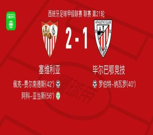 塞維利亞21逆轉(zhuǎn)畢爾巴鄂競技,阿科亞當(dāng)斯點(diǎn)射破門,佩克費(fèi)爾南德斯建功