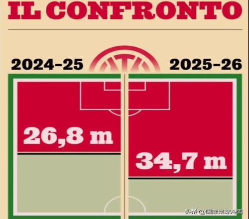 國米意甲第2輪輸給烏迪內(nèi),第3輪輸給尤文時(shí),相關(guān)數(shù)據(jù)都超過了30碼(27.5米)。10月28日,國米客場對(duì)陣那不勒斯時(shí),相關(guān)數(shù)據(jù)是28.0碼(25.6米)。